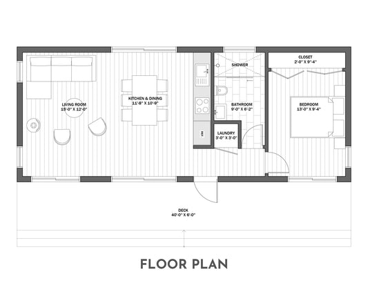 Modern Cabin House, 1 Bedroom, 16’ x 40’