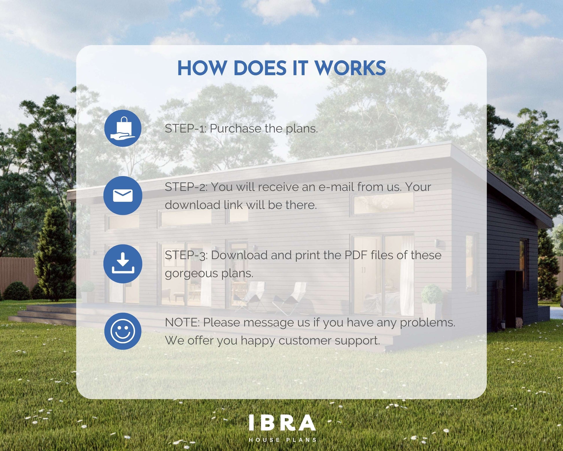 Please keep in mind that we only provide modifications for the Complete Package offer. Need something else? Email us here at ibrahouseplans@gmail.com or use the chat app on the website.
