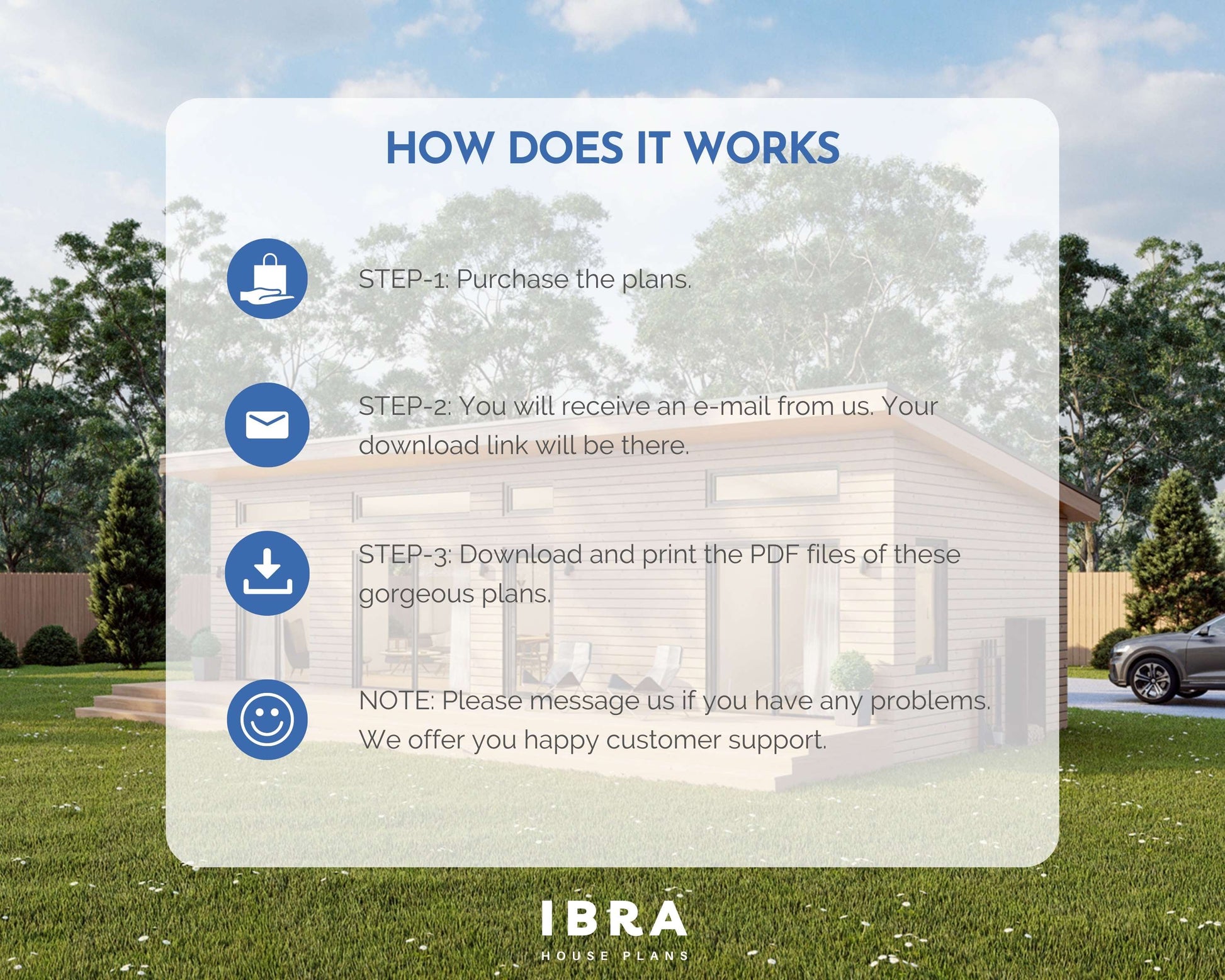 Please keep in mind that we only provide modifications for the Complete Package offer. Need something else? Email us here at ibrahouseplans@gmail.com or use the chat app on the website.