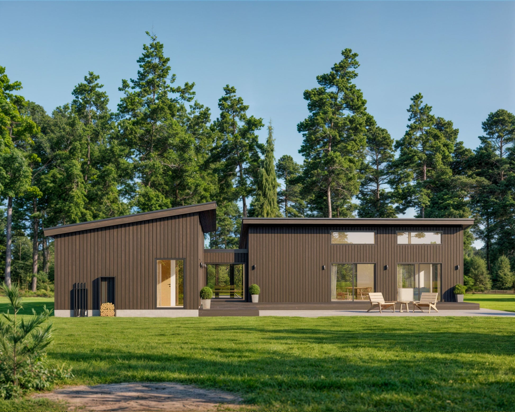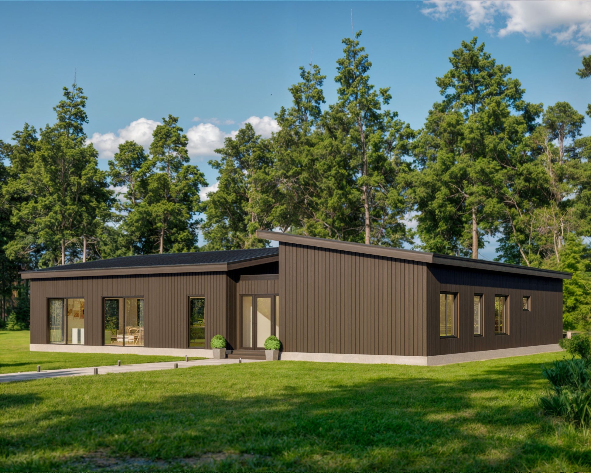 Shed Roof Modern Cabin House, L-shaped House, 3 Bedroom